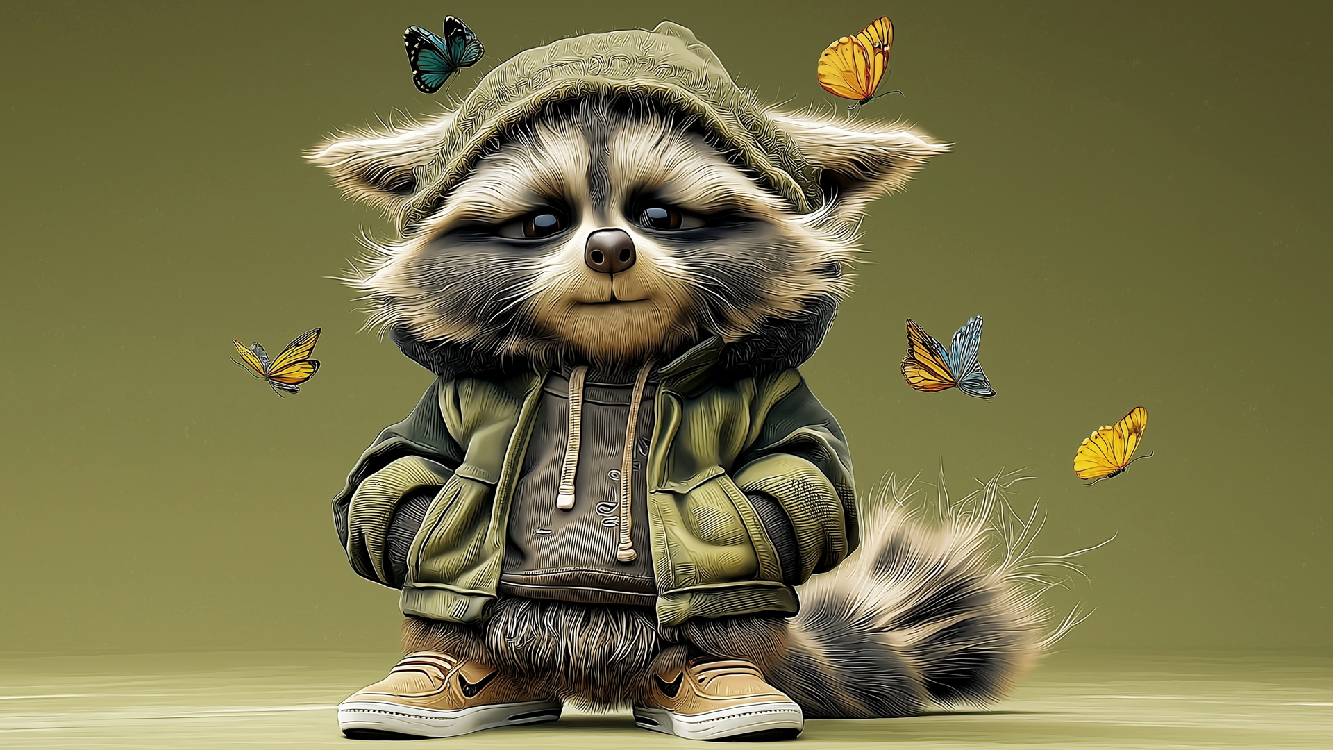 Timmy ist kein gewöhnlicher Waschbär – er ist ein Cartoon-Charakter mit Haltung, Herz und Style. Als wandelbarer Markenbotschafter vereint er menschliche Züge mit überzeichneter Mimik und Bewegung. Das Design zielt darauf ab, Emotionen schnell und klar zu transportieren – charmant, eigenwillig, einprägsam.